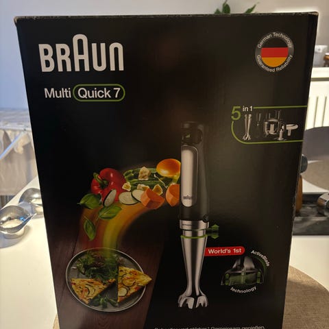 Braun stavblender i hvid. Elektrisk stavblender med ledning og aftagelig stavdel. Den er god til at blende og purere madvarer direkte i gryden eller skålen. Klassisk model med håndtag i hård plast og enkel betjening. Den er velegnet til daglig brug i køkkenet til fx supper, saucer og smoothies. Det er også en håndmixer, men alle piskedelene blev væk i en flytning fra a til b. Derfor sælges den som en stavblender. Sender gerne.