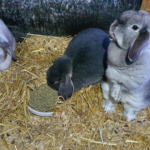 2 grå/hvide, 1 brun/hvid og 1 helt brun.