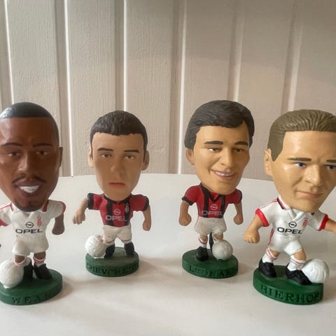 Corinthian ProStars Elite samlerfigurer. Sættet indeholder to fodboldfigurer i gaveæske samt tilhørende certifikat med individuelt nummer. Figurenes trøjer viser forskellige klub- eller landsholdsdragter. Velegnet som samlerobjekt eller udstillingsfigur for fodboldinteresserede og samlere af ProStars-serien.