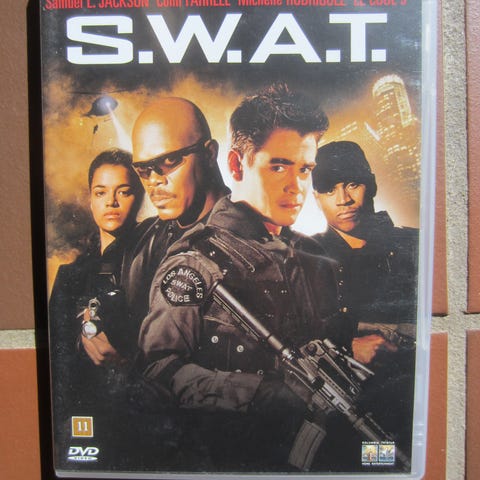 S.W.A.T. DVD film. Actionfilm udgivet på dvd med dansk tekst blandt underteksterne. Forsiden viser hovedrolleindehaverne, og bagsiden indeholder kort resumé af handlingen samt tekniske oplysninger om lyd- og billedformat. Velegnet til afspilning på standard dvd-afspillere, der understøtter region 2.