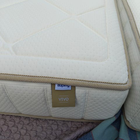 Auping AVS Vivo Pocket madras i hvidt betræk. Madrassen har pocketfjedre og er mærket med fasthed "soft" på etiketten. Designet med ventilerende sider og håndtag til nem håndtering. Velegnet som madras til seng eller sengeramme i standard dobbeltsengs- eller enkeltsengsopstilling, afhængigt af mål som angives i annoncen.