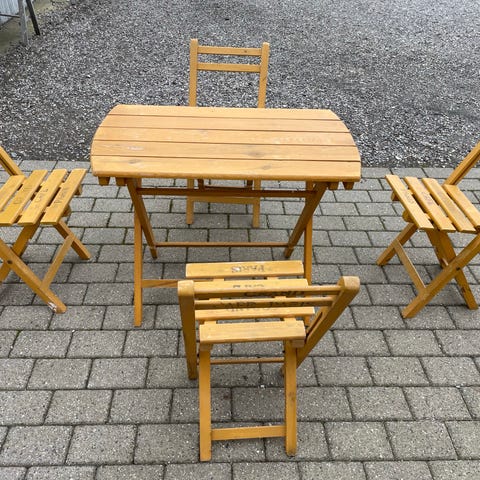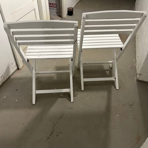 Havesæt bestående af et hvidt havebord og to matchende klapstole. Bordet har lamelbordplade og sammenklappeligt stel. Stolene er ligeledes udført med lameller i sæde og ryg og kan klappes sammen for nem opbevaring. Sættet egner sig til brug på altan, terrasse eller i have som spise- eller caféområde.
