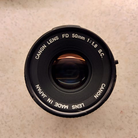 Canon 'nifty-fifty' objektiv, 50mm inkl. for- og bag-beskyttelse. Fuld funktionsdygtig og ingen ridser eller kradser