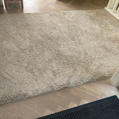 IKEA tæppe i rektangulær form. Tæppet fremstår i en ensfarvet grå nuance og har en blød, lidt høj luv, som egner sig til brug i f.eks. stue eller soveværelse. Velegnet som gulvtæppe i rum, hvor man ønsker en dæmpet og neutral farve på gulvet.