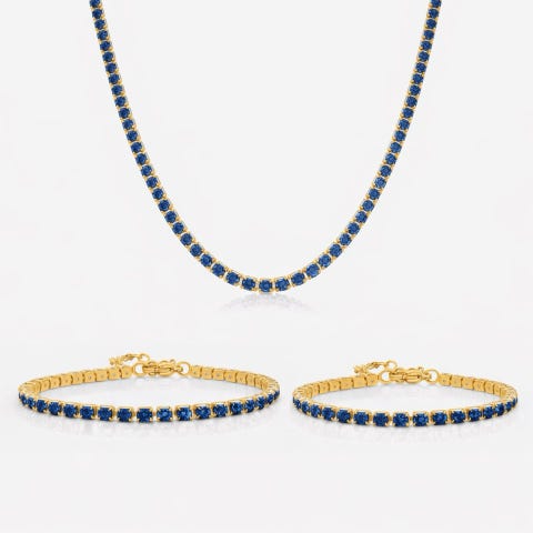 Størrelse: 44 cm + 5 cm. 100% rustfrit stål, Zirconia krystaller og PVD-belagt med 18 karat guld. Vandfaste, allergivenlige og fri for nikkel, hvilket sikrer komfort og holdbarhed.