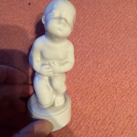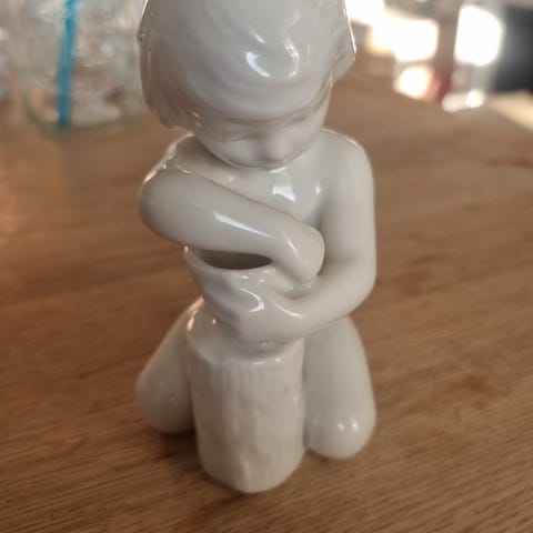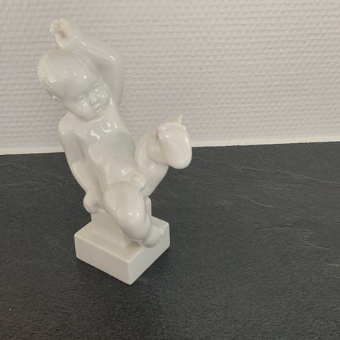Bing & Grøndahl porcelænsfigur i hvid glasur. Figuren forestiller et lille barn, der knæler med armene løftet mod hovedet. Undersiden er mærket med B&G, Denmark og modelnummer 2206. Egnet som dekoration i fx stue, vitrineskab eller samling af danske porcelænsfigurer.