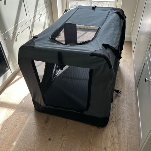 Transportbur i stof. Mål: H45xD45xL60. Stand: brugt