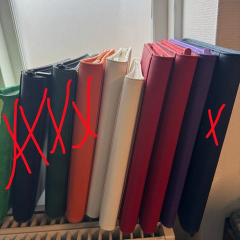 Mappen kan indholde op til 216 kort m. Toploader. Det er kun mappens to første sider der har været brugt til at opbevare TCG-kort.