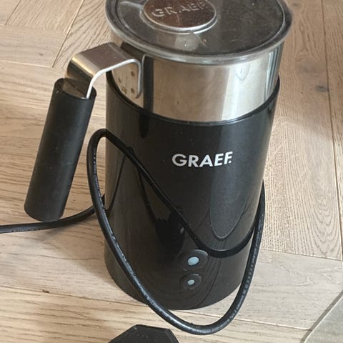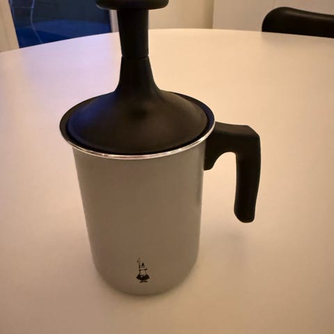 Jeg sælger denne mælkeskummer, som fungerer helt perfekt. Den varmer og skummer mælken samtidig – super smart!