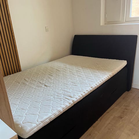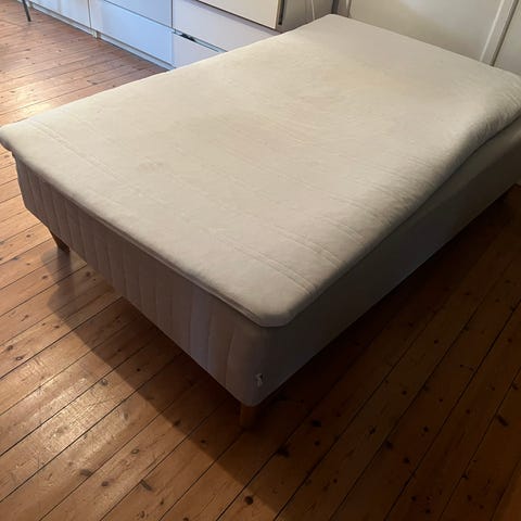 Rigtig fin seng men trænger til en rengøring. Kommer fra hjem med hund. Kan slås op og med opbevaring under. Skal hentes i vanløse på 1. sal
