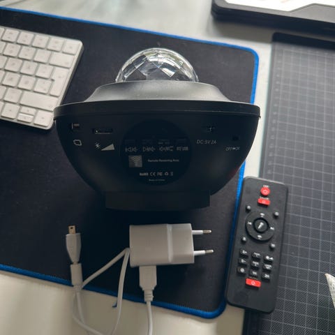 Mangler stikproppen. Men kan købes på nettet eller Harald Nyborg for 20-30kr US - EU adapter. Selve strømforsyningen tager fint 230v