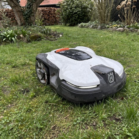 Husqvarna Automower robotplæneklipper, incl. Garage og 100 meter kabel samt mange knive.