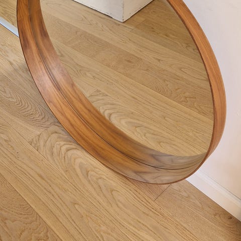 IKEA Stockholm rundt spejl med ramme i trælook.