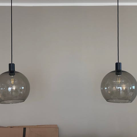 2 x store lamper som har hængt over spisebordet