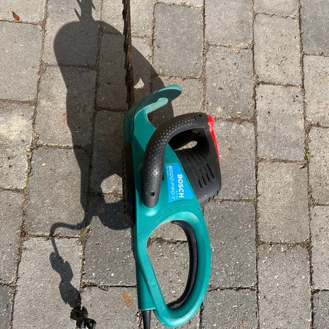Bosch teleskop hækkeklipper i grøn. Hækkeklipperen er udformet som en stangmodel, der gør det muligt at klippe hække og buske i højden fra jorden. Egnet til trimning og vedligeholdelse af hække og buske i have og udendørsarealer. Der er to batterier.