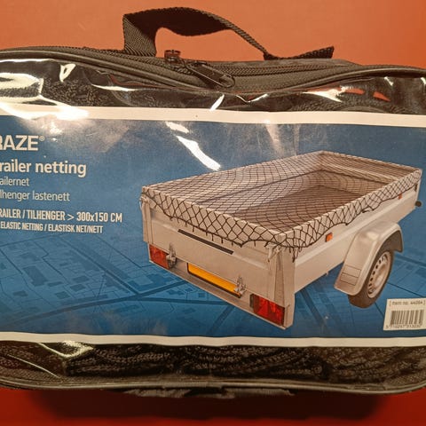 Grønt lastnet med elastiksnor langs kanten. Nettet har kvadratiske masker.