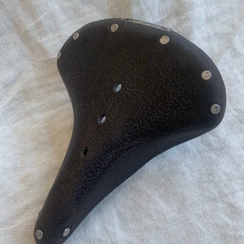 Brooks lædersæde, godt brugt men meget "broken in" og comfy 😊