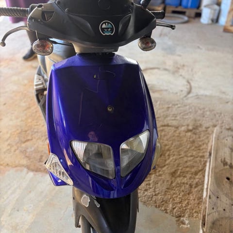 Scooter i gul farve. Modellen fremstår som en klassisk mindre scooter med plads til én fører og eventuelt en passager. Sædet er sort, og scooteren har fodplade og styr med spejle. Egnet til kortere ture i by og omegn, afhængigt af teknisk stand og lovlig registrering, som ikke fremgår af oplysningerne.