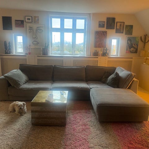 Sælger denne Bolia modulsofa i serien Noora med tilhørende puf. Sofaen er 230 cm lang og 107 cm. bred/dyb.