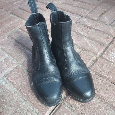 Velholdte sorte ridesko str. 38 og sorte leggings der passer til. Begge dele har haft en ejer og er i pæn brugt stand, uden tegn på slitage.
