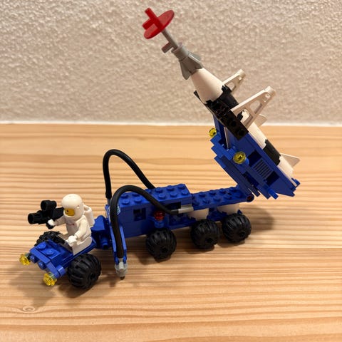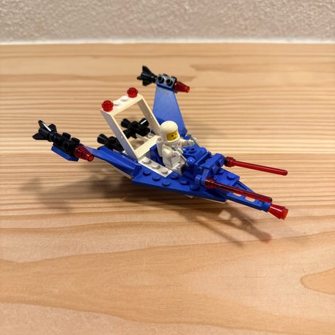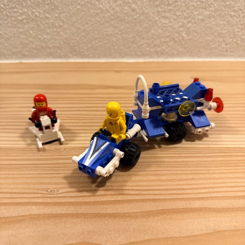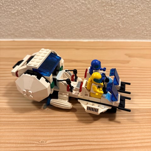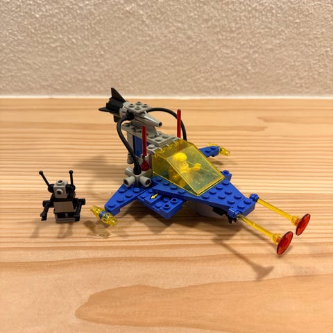 Ældre LEGO 6803 rumfartøj sæt i klassisk farvekombination.