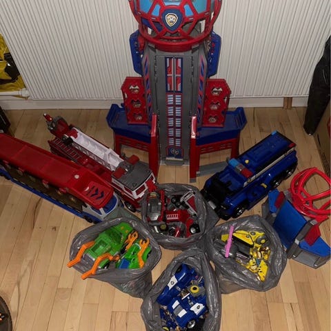 Sættet indeholder et Mighty pups tårn med lyd- og lysfunktioner samt 6 Mighty pups fra forskellige film/episoder i blandet stand. Nogle virker/skal have batterier/nogle er måske defekt.