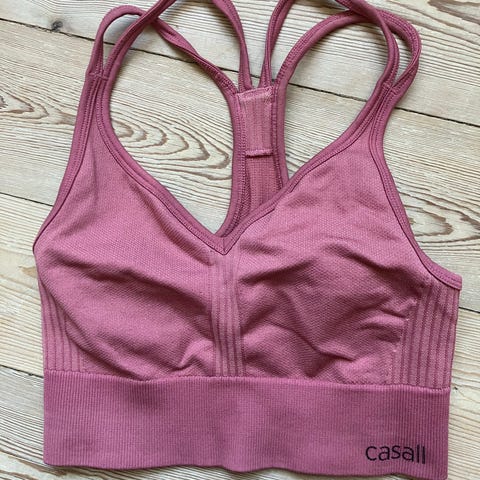 Super flot Rosa og sort sportsBH i størrelse M. Brugt få gange, men med nogle mørke skygger fortil, som, jeg ikke ved, om går af.