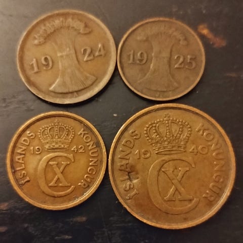 NORGE NORWAY 1 ØRE 1936, 1937, 1948, 1950, 1953, 1955, 1956, 1957, 1962 3 SLAGS! Prisen er for dem alle! Porto 25kr. op til 100gram!