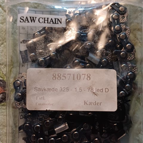Prisen er for alle seks. Hel nye savkæder til f.eks. en stangsav eller kædesav med 20 cm sværd. Jeg brugte dem til min Redback Lithium E6080 sav, men den gik i stykker, og nu har jeg så 6 stk. helt nye kæder i uåbnet emballage.