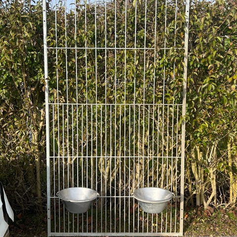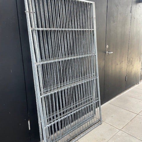 Hakoni hundegård i galvaniseret metal. Elementerne består af lodrette og vandrette tremmer samt en dørsektion med lås. Egnet som udendørs indhegning til hund eller andre mindre dyr, hvor der er behov for en robust og vejrbestandig løsning.