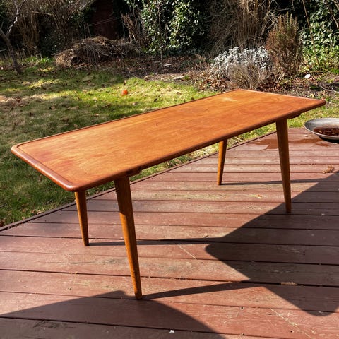 Wegner frugtfad i teaktræ og rustfrit stål.