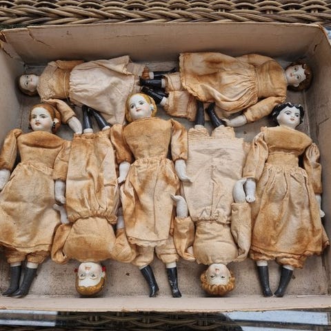 Porcelæns hoveder: Han bruger ofte hoveder i "bisque" (mat porcelæn) af høj kvalitet, inspireret