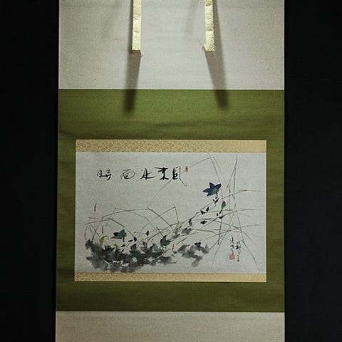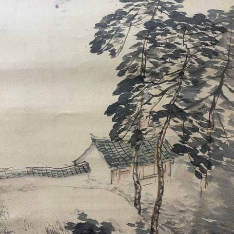 Hængende rullemaleri - 田中六峰 Tanaka Roppō (1863-?) - 春山水 Sansui-ga Spring (The Cherry Blossoms and the pine tree) - Japan - Tidlig Showa-periode