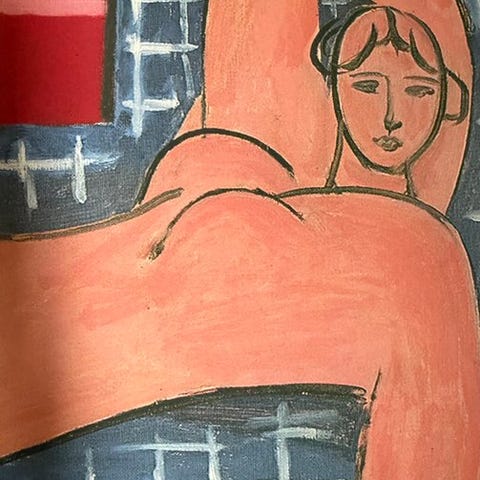 - Henri Matisse (efter), autoriseret offsetlitografi på glat, tungt papir (ca. 300 g/m² - henviser til papirtykkelse/densitet).