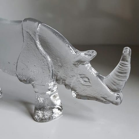 Håndlavet Næsehorn i genbrugsglas fra Ngwenya Glass, Kingdom of swgziland.