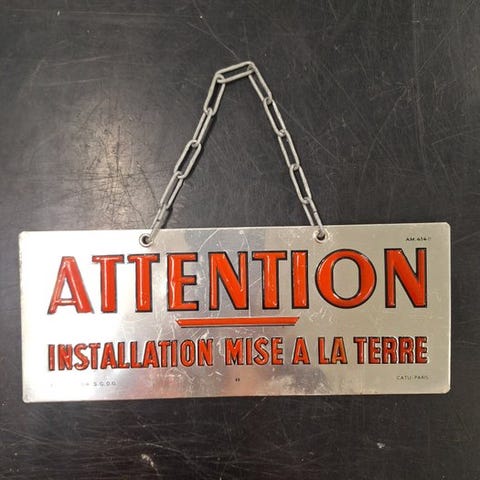Original italiensk industrisikkerhedssignal med teksten “Pericolo d’Incendio” (Brandfare), dateret fra slutningen af 1960’erne til begyndelsen af 1970’erne.