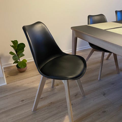 Sælger 4 flotte hvide stole med sort sæde og sorte ben. Sælges grundet flytning og kommer fra et røg og dyrefrit hjem. Super gode og sidde i