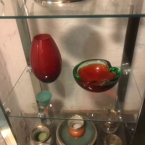 To små røde glasskåle / vaser samlet. Meget kraftige og med fin form. Diameter 6,5cm. Højde 5,5cm. Fejler intet. UBRUGTE. Vejer 270g.