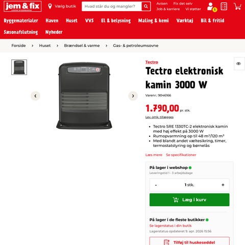 Tectro elektronisk kamin ovn sort