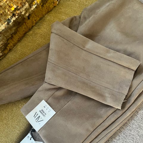 Lys brun – strik. Elastik i livet. Afhentes eller kan sendes med dao for 45 kr. uden omdeling.