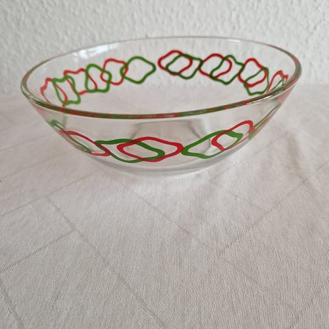 Flot antik intakt glasskål, ravfarvet, b. 17 cm.