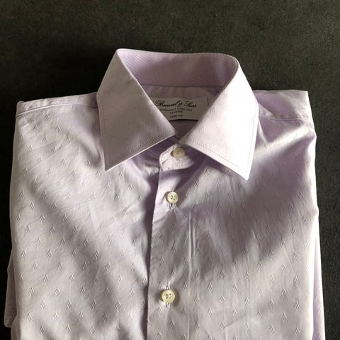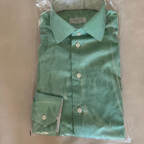 Eton Slim fit herreskjorte i blå bomuld i størrelse S. Skjorten har langærmet design med knaplukning foran og klassisk krave. Indersiden af krave og manchetter har mønstret kontraststof. Velegnet som formel eller semi-formel skjorte til hverdag og arbejde.
