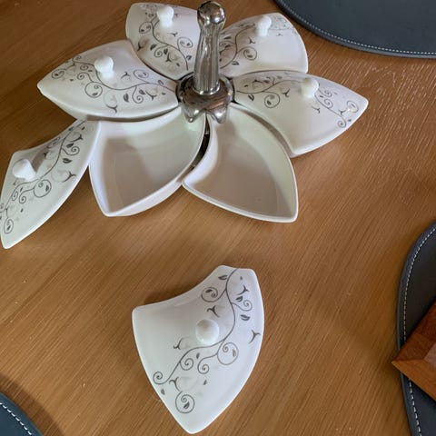 Flot antikt Cabaretfad med 3 skåle, intakt som nyt.