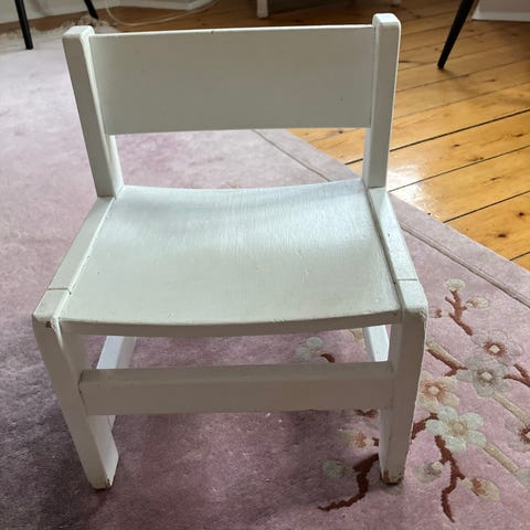 IKEA børnestol i træ med klassisk ryg med lodrette tremmer. Stolen står på fire ben med tværstivere for ekstra stabilitet. Der ses både sort og hvidmalet variant på billederne. Velegnet som siddeplads til børn ved bord, i legeværelse eller ved skrivebord. Passer ind i de fleste rum med enkel, tidløs stil. Prisen er pr. stk