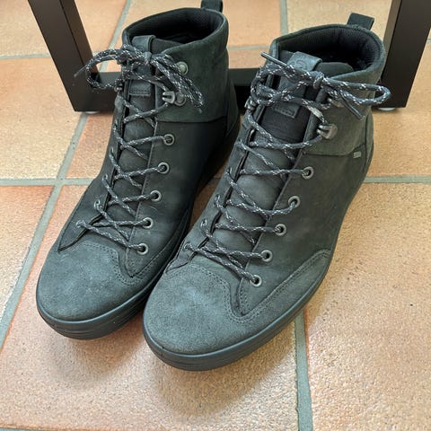 Sælger et par super lækre og robuste støvler fra ECCO. Støvlen er lavet i en flot kombination af grøn nubuck og tekstil, hvilket gør den både slidstærk og åndbar.