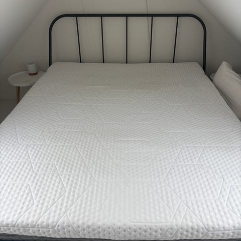 Topmadras er fra Emma Sleep, som er et globalt brand, men ikke længere sælger i Danmark og er af total topkvalitet. Den er åndbar og ekstrem støttende ligegyldigt hvordan du ligger.