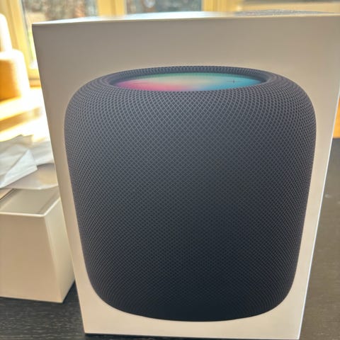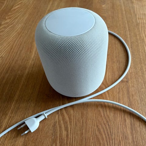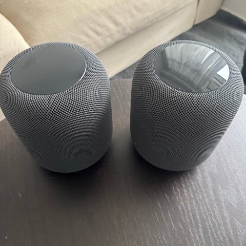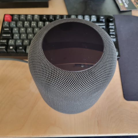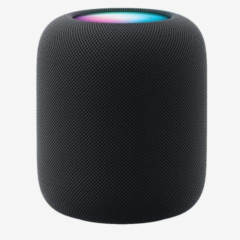 Apple HomePod højtaler i sort. Trådløs smart-højtaler med indbygget strømledning.
