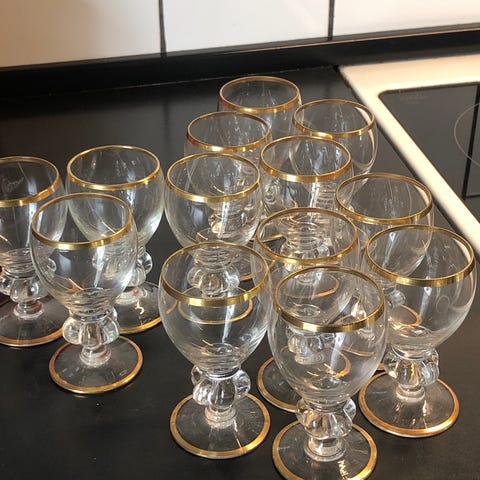 Super flotte Gisselfeld portvinsglas med guldkant fra Holmegaard sælges for 40kr. stk.