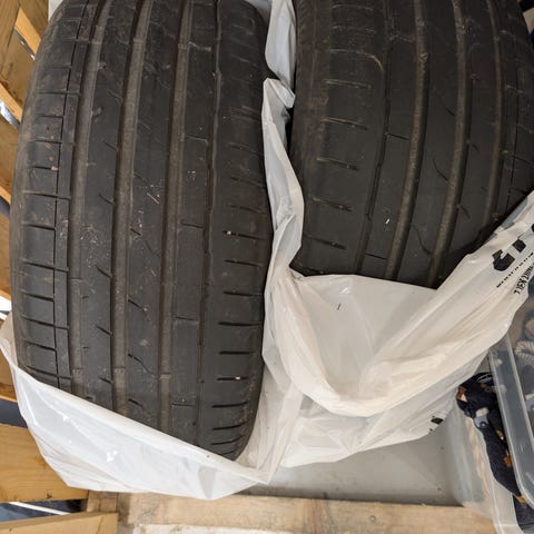 Hankook Ventus S1 evo3 summer tires with sound absorber, 700 km of life like new, changed from a Tesla Y and replace with all seasons. All the set of 4 without rims.