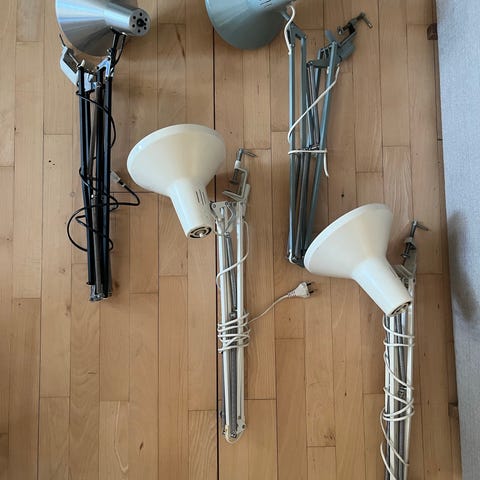 Hvide ikea lamper. Kan sættes på skrivebord. 50 kr. pr. stk